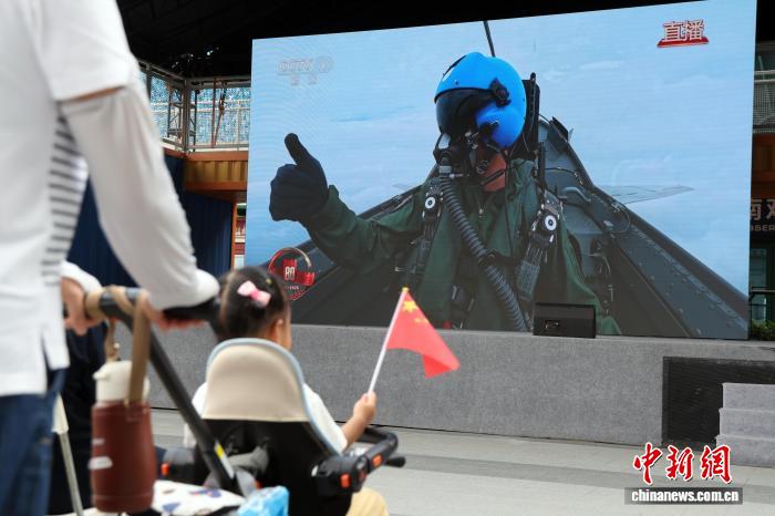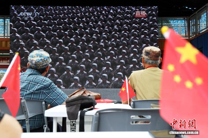 9月3日,市民在上海环球港商厦,通过商厦内的大屏幕观看九三阅兵盛况。中新社记者 汤彦俊 摄