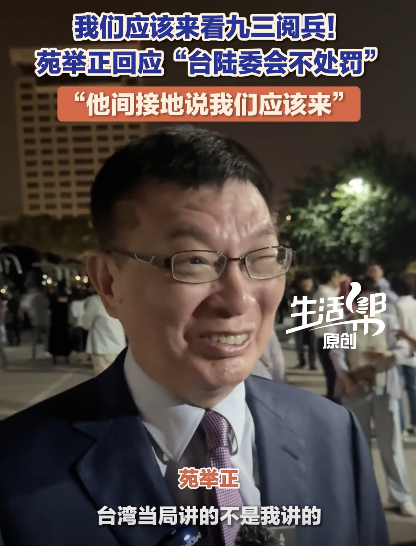 苑举正回应“台陆委会不处罚”。我们应该来看九三阅兵!9月3日,北京,苑举正回应“台陆委会不处罚”:“他间接地说我们应该来。”