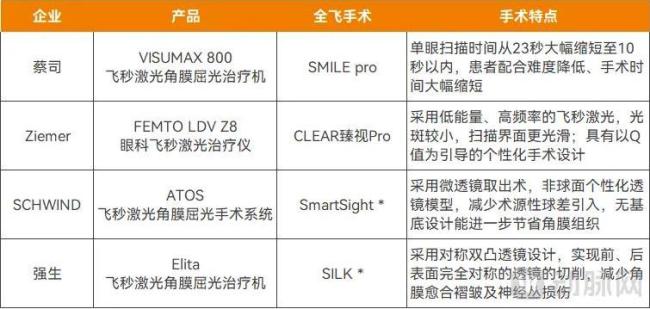 具体来说,2025年3月,蔡司新一代机器人全飞秒VISUMAX 800上市,搭载了新微创全飞秒手术SMILE pro。同年5月,Ziemer在国内已获批的产品FEMTO LDV Z8新增全飞秒功能,基于该设备的全飞秒激光手术CLEAR臻视Pro发布。