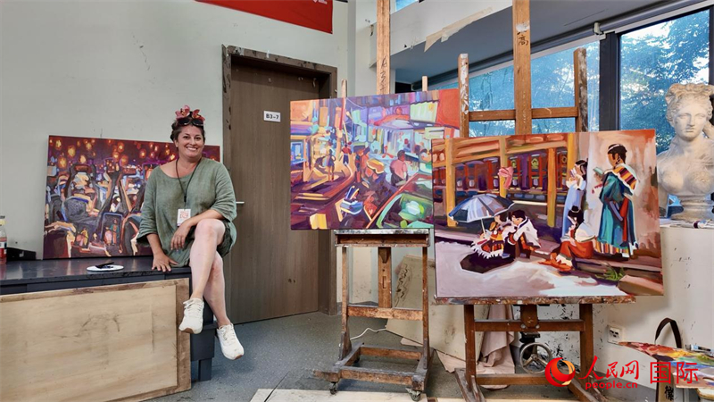 加拿大艺术家米歇尔在中国美术学院画室创作。人民网 严小晶摄