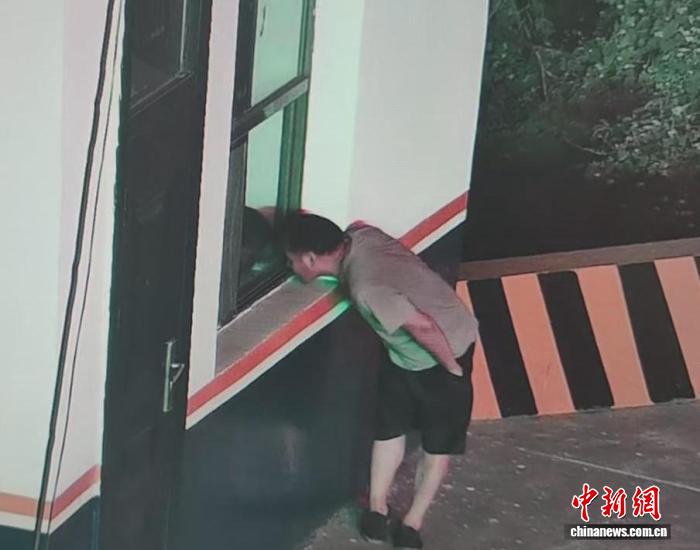 超限车辆成批驶入高速公路前,派人到收费站外广场“望风”。视频监控截图
