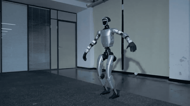 宇树机器人经过一年半的练习,展示出令人惊叹的新技能。视频中,宇树 G1 机器人在空中翻转,划出一道完美的弧线,动作一气呵成,紧接着再连续后空翻。此外,它还能完成三个单手侧后翻,摆出功夫姿势,打出一套漂亮的拳法,并做出标准的顶膝动作,仿佛钢甲铁拳走进现实。