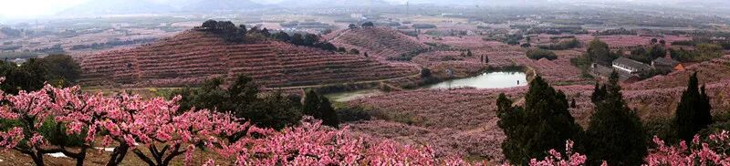 阳春三月,溪流雨过,在歌中所唱的宁波奉化,春山处处桃花绽放。“小桃灼灼柳鬖鬖,春色满江南。”漫山遍野的桃花,远望如万顷锦霞。