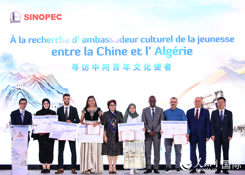 人民网阿尔及尔11月10日电(记者郝瑞敏)当地时间11月10日,中国石化集团在阿尔及利亚首都阿尔及尔成功举办“寻访中阿青年文化使者”终选暨颁奖典礼。本次活动不仅是中阿文化交流的重要平台,更是落实中阿合作论坛“八大共同行动”中“青年成才”倡议的具体实践。活动通过青年视角讲述中阿合作故事,增强民意基础,为两国关系长远发展奠定了坚实基础。阿尔及利亚文化与艺术部长玛莉卡·本杜达、中国驻阿尔及利亚大使馆经济商务参赞郭建军、阿尔及利亚中国友好协会主席德贝什、以及来自中国石化集团有关领导、中阿两国的青年代表、专家学者共同见证了这一文化交流盛事。