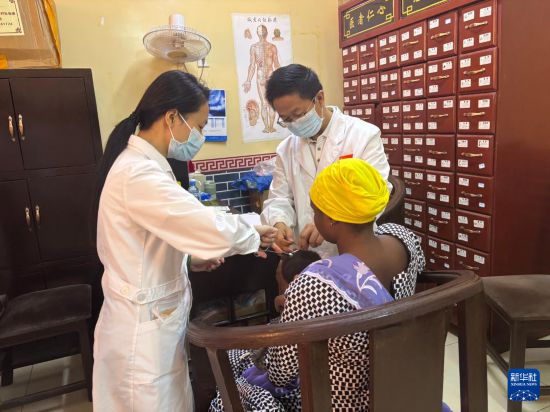 11月18日,在尼日尔尼亚美,中国医疗队医生为患儿针灸。新华社发(第24批援尼日尔中国医疗队供图)