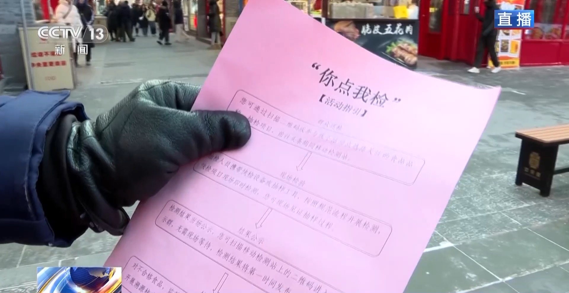 在现场,记者发现了这样一份向所有游客发放的传单,上面是一个叫“你点我检”的活动。所谓“你点我检”,就是如果您吃了哪家食品觉得不放心,可以直接按照传单上的方法找到监管部门的移动检测站对食物进行现场检测,既能快速回应消费者关切,又能精准监管。