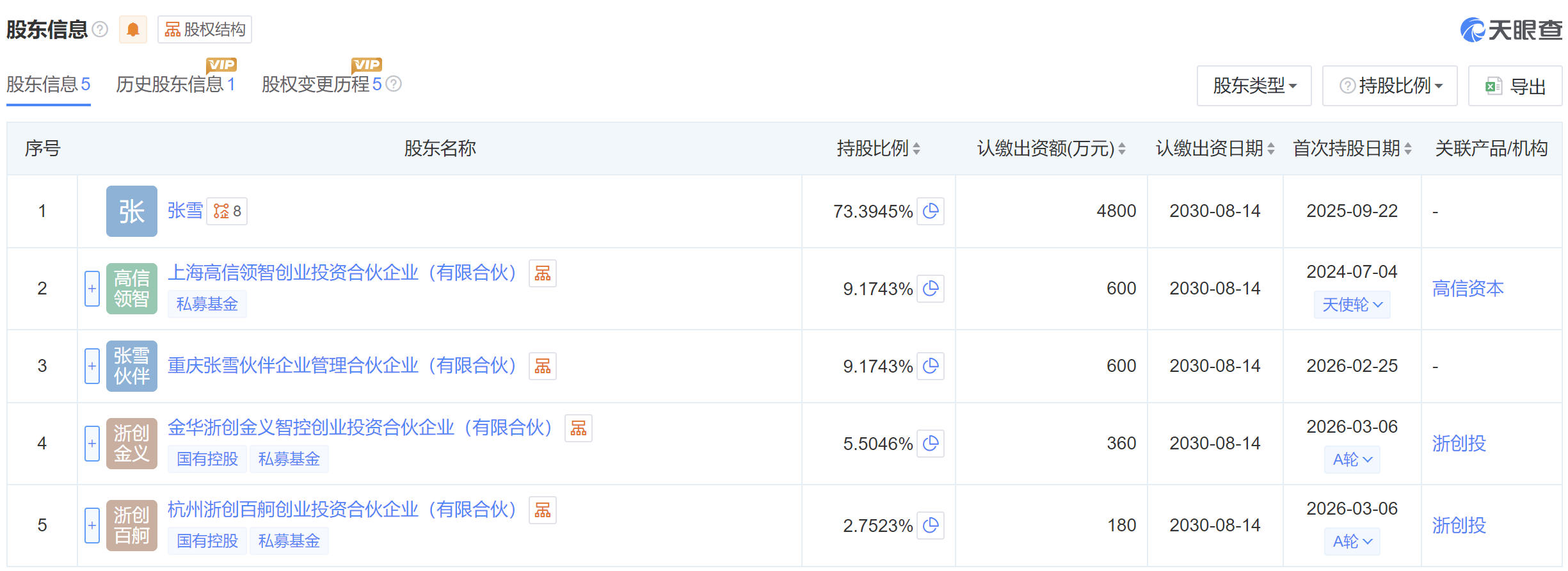 后经高信资本创始合伙人牵线,2026年1月,浙江省国有资本运营有限公司旗下浙江省创业投资集团有限公司(下称浙创投),通过杭州浙创百舸、金华浙创金义智控两只基金完成对张雪机车的A轮投资,投资总额9000万元,合计持股约8.26%。