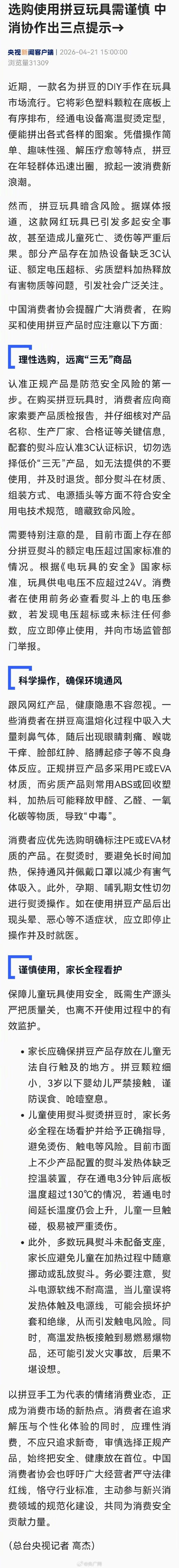 中消协提醒玩拼豆要注意这些,应认准3C认证