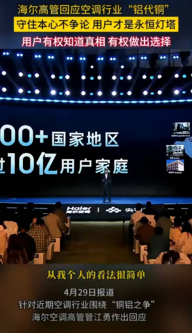 海尔高管直言:为几两铜争论不休,不如把心思放到用户身上。真材实料是企业本心,高品质、为用户着想,才是行业该有的样子。
