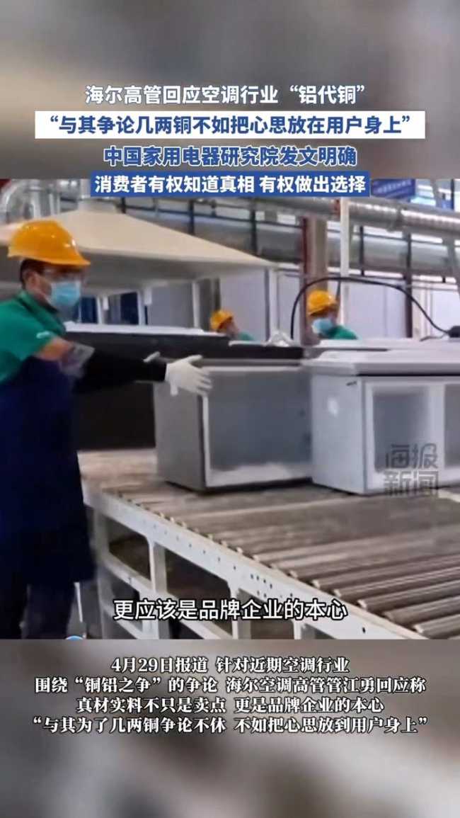 空调行业“铜铝之争”愈演愈烈,海尔高管正面发声表态直言不必执着于材料论战,真材实料是品牌本心,用户体验才是核心。