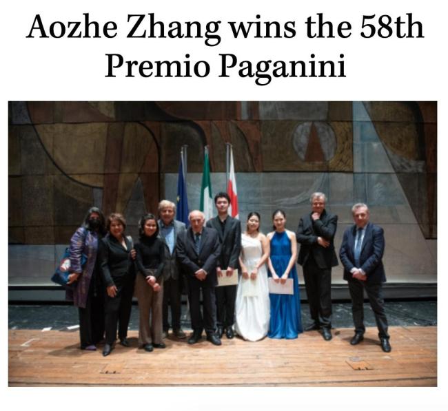 在意大利热那亚刚刚结束的第58届帕格尼尼国际小提琴比赛中,17岁的中国选手章奥哲成功夺冠。比赛前三名分别被中日韩三国选手包揽,金奖得主为章奥哲,银奖为日本选手吉本梨乃,铜奖为韩国选手KIM Hyun Seo