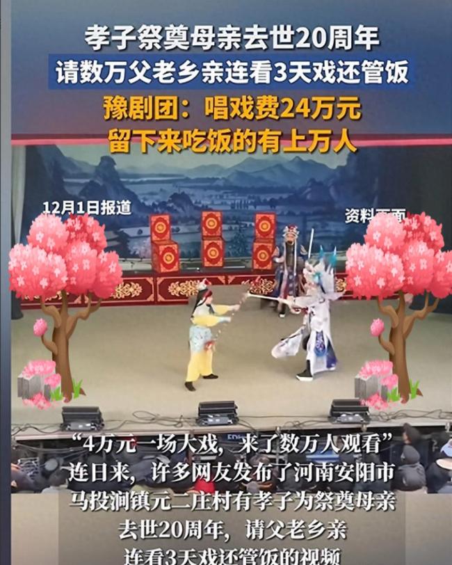 孝顺是中华民族的传统美德。作为子女,如何表达对父母的爱与尊敬呢?最近,河南安阳市马投涧镇元二庄村的一位男子为祭奠去世20周年的母亲,请乡亲们免费看戏吃饭,这一举动引发了广泛讨论