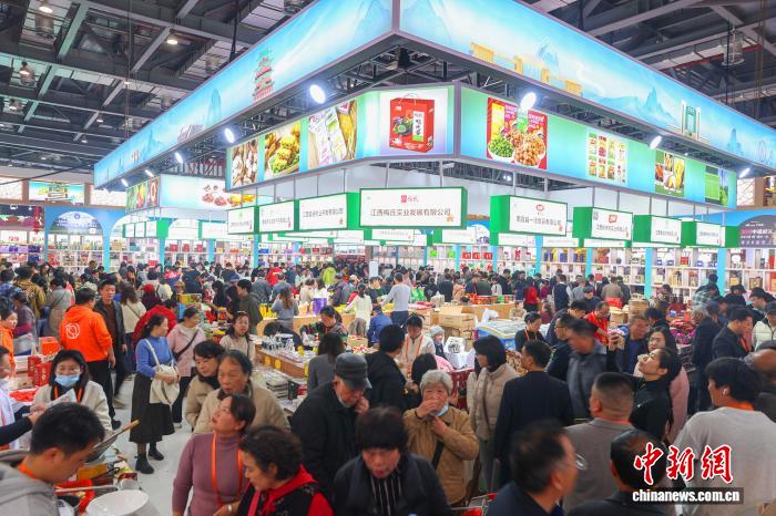 中新社南昌1月16日电 (记者 吴鹏泉)湖南新化红茶、山西老陈醋、江西赣南脐橙……第七届江西“生态鄱阳湖·绿色农产品”交易博览会(简称“江西农博会”)16日在南昌开幕,逾800家展商携6000余款产品参展,搅热江西年货