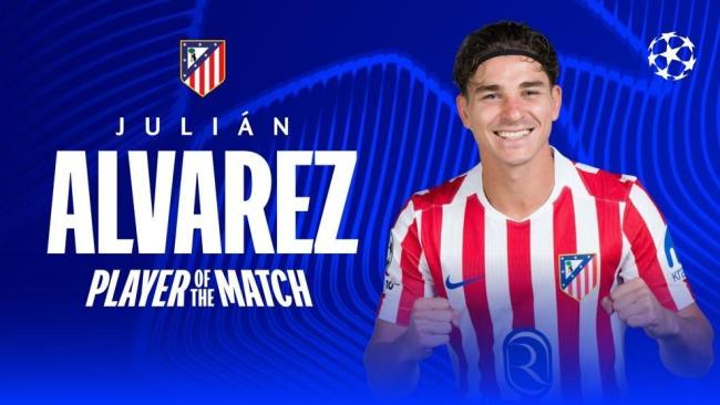 在欧冠1/4决赛首回合比赛中,马德里竞技客场以2-0战胜巴塞罗那。阿尔瓦雷斯在这场比赛中表现出色,凭借一记精彩的直接任意球破门,帮助球队取得胜利,并被评为全场最佳球员